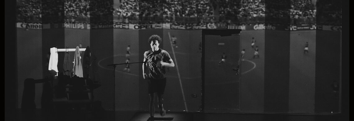 Il incarne ce personnage de ses six à ses vingt ans, à travers une performance sportive et théâtrale, comme un attaquant en pleine action, qui court après son propre destin.